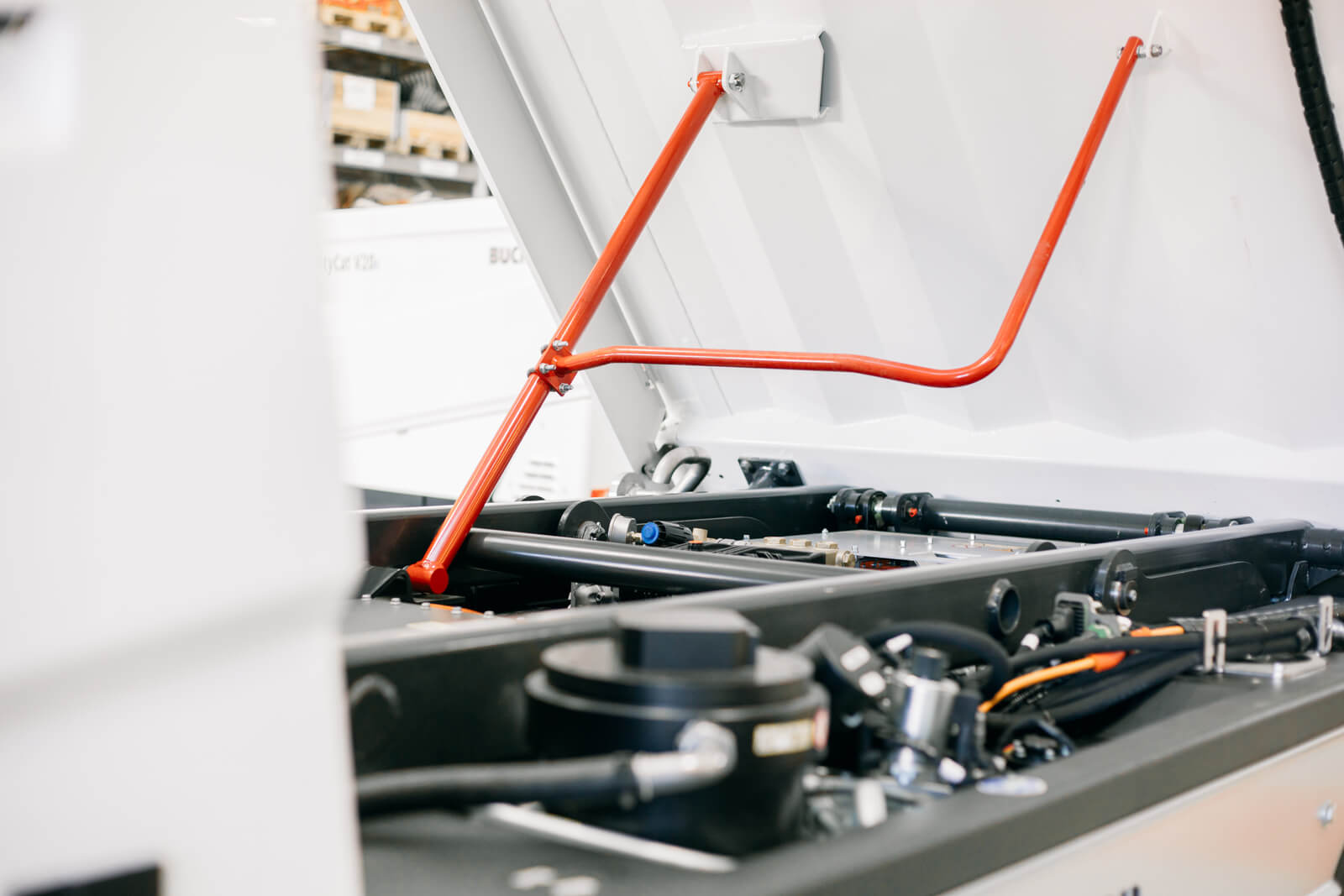 Com o trem de força elétrico e seu pacote de bateria Bucher especialmente projetado, o CityCat VR50e se destaca em termos de autonomia e operação com emissão zero.