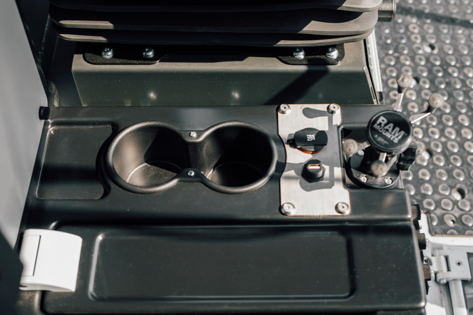 Cada cabine vem com dois assentos de motorista completos com apoios de cabeça para oferecer não apenas uma experiência de direção confortável, mas também uma estação de trabalho ergonômica. Além disso, pode ser instalado um terceiro assento rebatível, que permite o transporte de três pessoas ao mesmo tempo.
