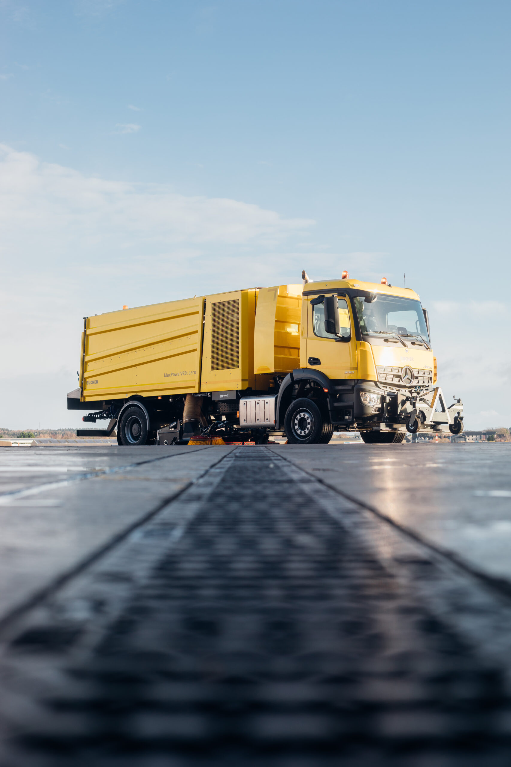 Com seu inovador sistema de varredura e ampla gama de equipamentos opcionais, o MaxPowa V95t aero é ideal para todos os tamanhos de aeroportos no mundo todo. Jatos rotativos de alta pressão opcionais oferecem limpeza profunda rápida e eficaz para limpeza de estandes.