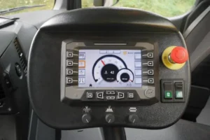 Um painel de controle de barramento CAN para controle e monitoramento da operação de varredura é montado na cabine com funções ergonômicas e fáceis de ler para leitura de informações, incluindo temperatura do motor e horas de operação.